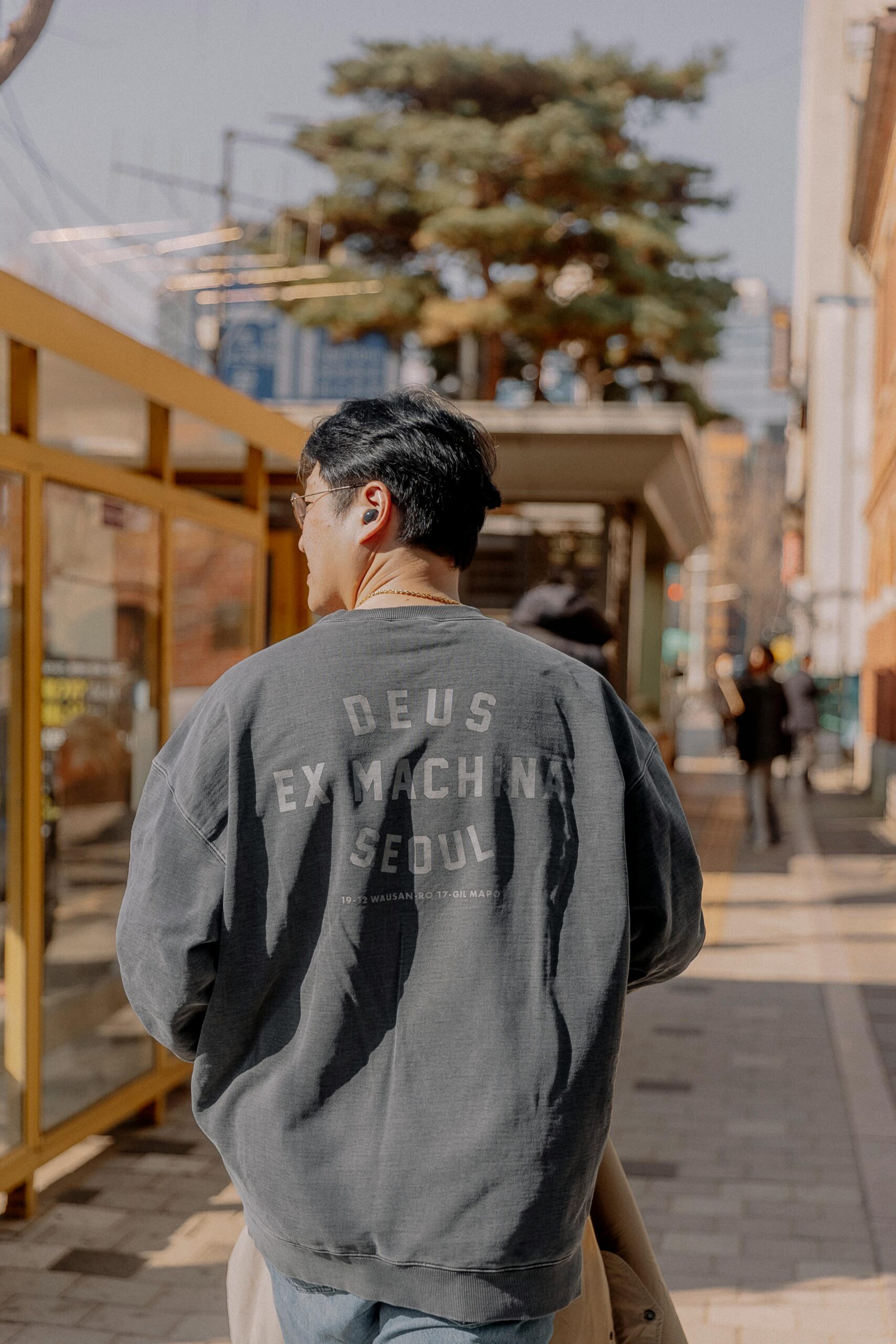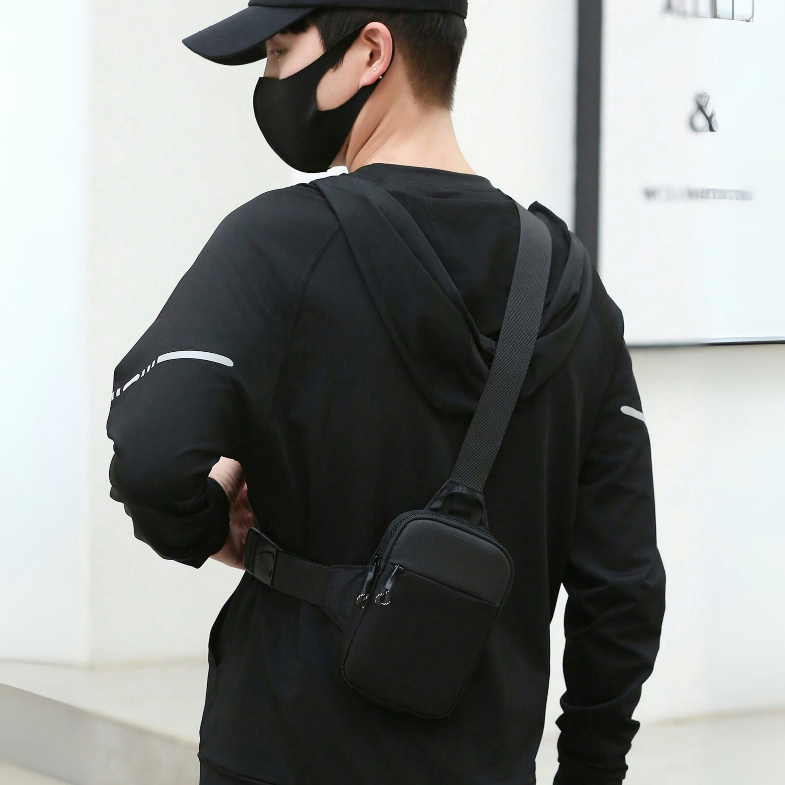 Optional: cap or beanie, wired headphones around your neck for extra “idol heading to rehearsal” mood.